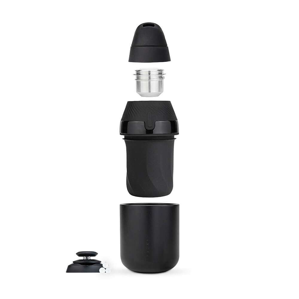 - Core Cup (anodized aluminum with silicone foot) — The glass-free attachment that houses the 3D Chamber. Durable, pocket-safe, and engineered so the outer cup never heats up during use.